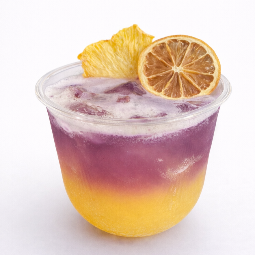 Gin, fresh lemon juice, simple syrup, pineapple nectar,, topped with blue tea infusion.