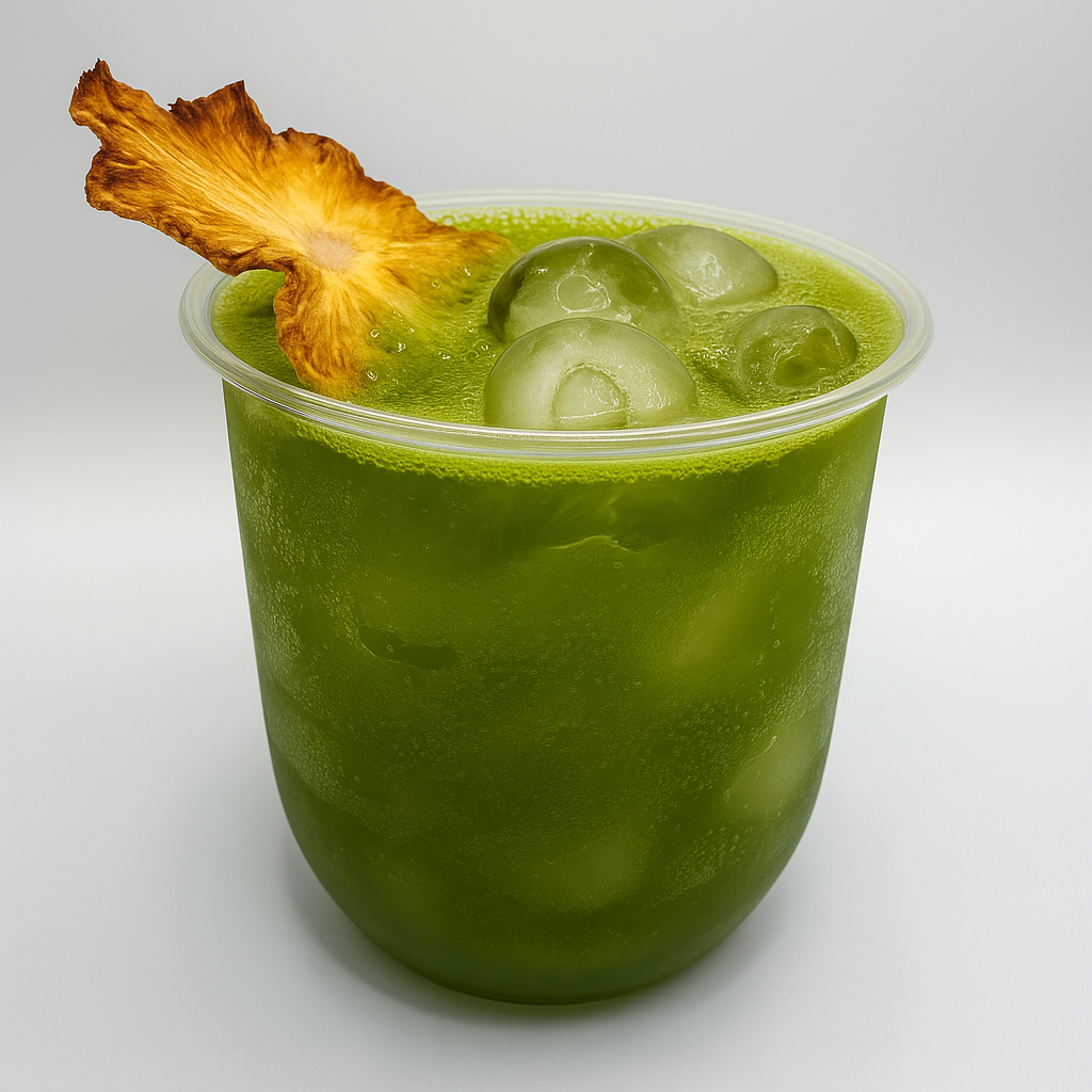 Vodka, Lemon Juice, Simple Syrup, Club Soda, Green Apple Boba Pearls