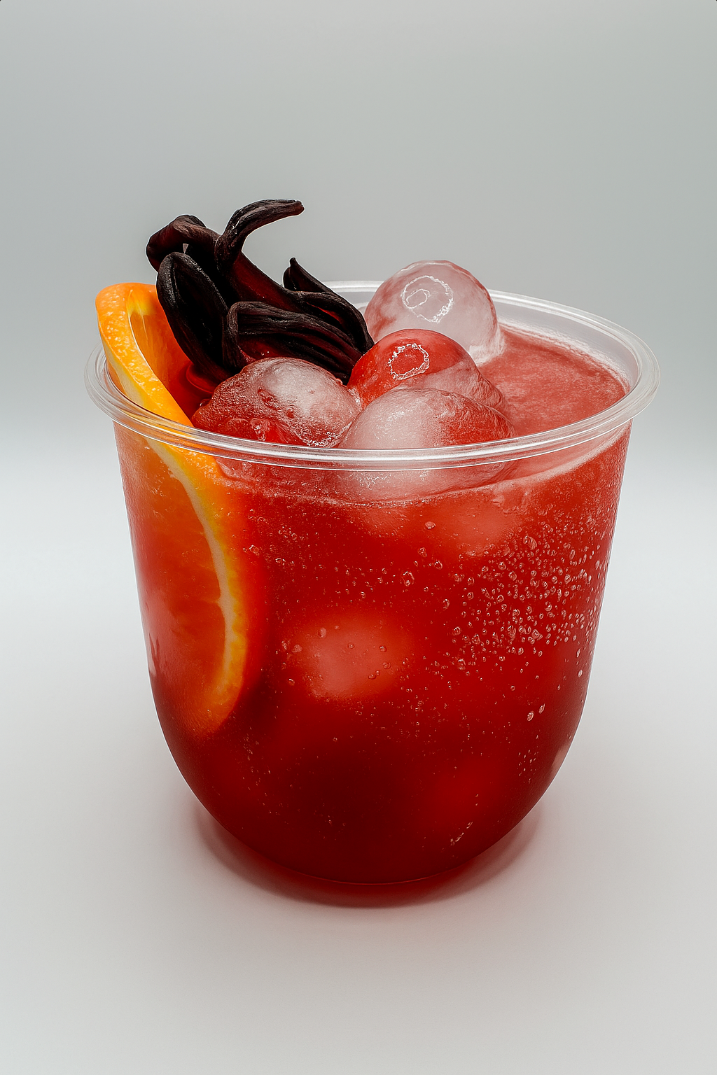 Tequila, hubiscus syrup, orange juice and cranberry juice