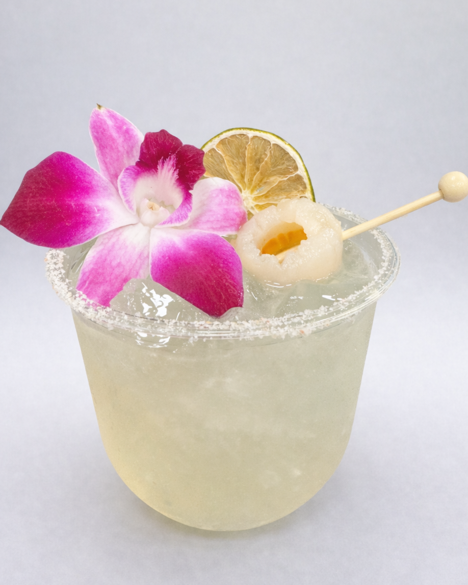 Tequila, orange liqueur, lime juice, and lychee syrup